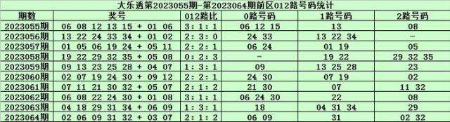 体彩大乐透第2023065期前区奖号012路分析: