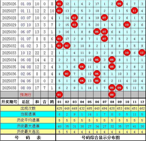 上期回顾:大乐透第2025038期开出奖号:07 08 20 26 34 + 08 09,前区包含5个尾数:0、4、6、7、8,后区开出一奇一偶、全大组合。