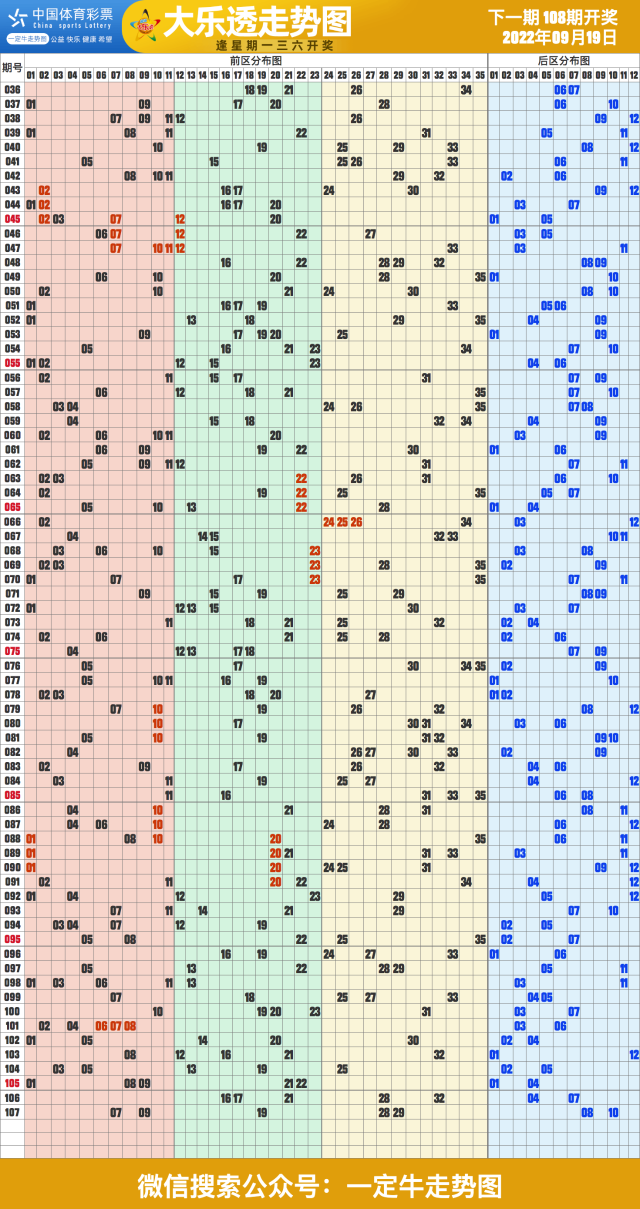 22年第108期超级大乐透近期走势图表