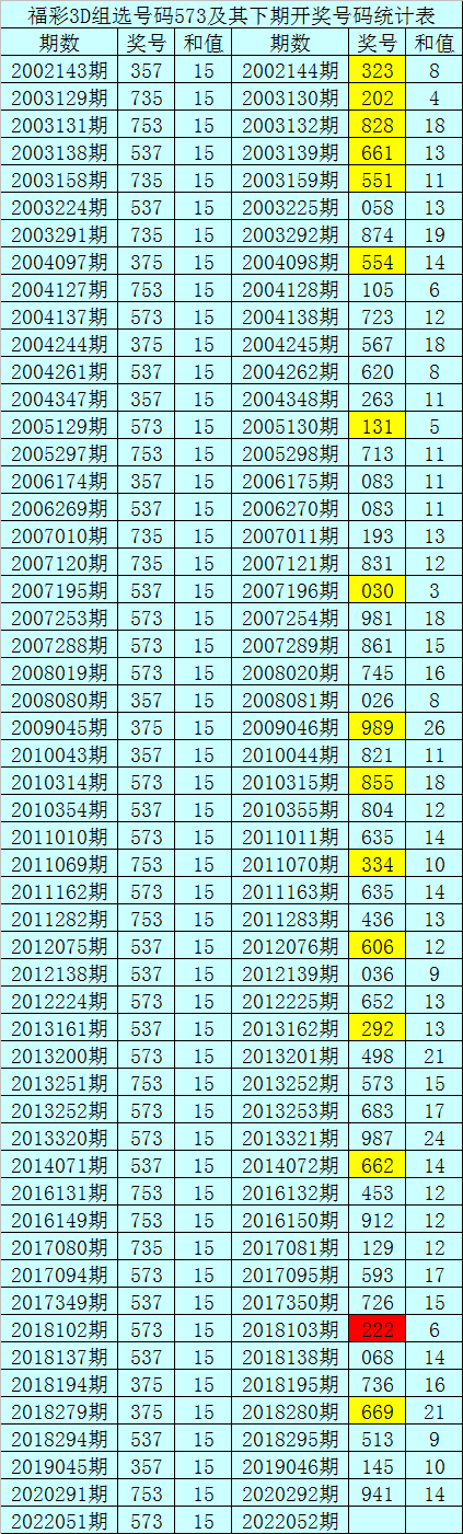 二、组选分析:历史上组选号码573开出了54次,其下期奖号分别为:323-202-828-661-551-058-874-554-105-723-567-620-263-131-713-083-083-193-831-030-981-861-745-026-989-821-855-804-635-334-635-436-606-036-652-292-498-573-683-987-662-453-912-129-593-726-222-068-736-669-513-145-941,其开出期数和下期奖号统计为: