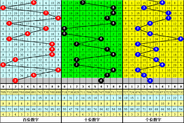 4、号码0-9出现开出频次分别为:号码3出现23次,号码6出现22次,号码2出现19次,号码5出现18次,号码8出现17次,号码1出现16次,号码0出现13次,号码9出现12次,号码4出现10次,号码7出现9次。一般来说,表现最冷的三码:4、7、9不会同时出现,本期杀一码:7;表现最热的四码:2、3、5、6中一般会出现奖号,本期注意号码;2。