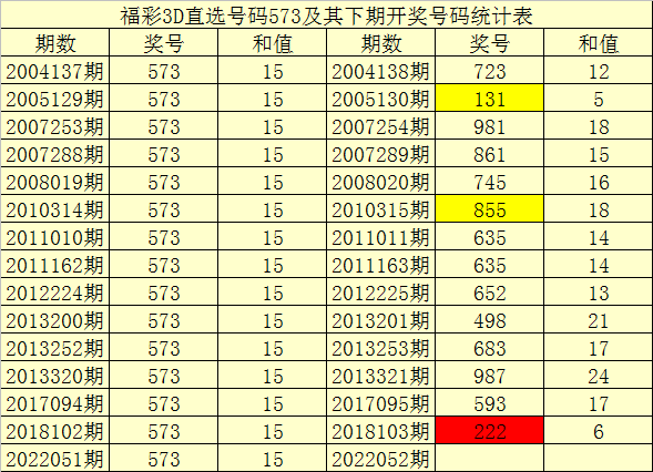 一、开奖回顾:第2022051期福彩3D奖号为573。奖号奇偶比为3:0,和值为:15,跨度为:4。