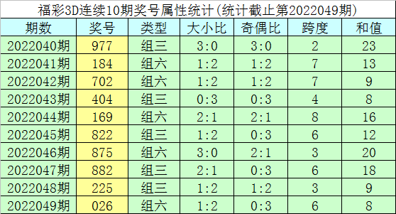 开奖回顾:福彩3D第2022049期奖号为026。奖号形态为组六,大小形态为小小大,奇偶形态为偶偶偶,和值为8,跨度为6。