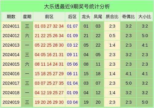 最近9期大乐透奖号数据统计表