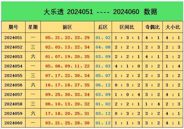 上期回顾:大乐透第2024060期奖号为:前区03、21、25、28、30,后区01、12,前区奖号三区比为1:1:3,奇偶比为3:2,大小比为4:1,后区开出小大组合01、12