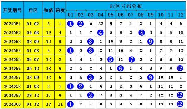 后区上期开出号码01、12,奇偶比为1:1,近十期后区奇偶比为12:8,总体看奇走势较热,本期后区要注意奇偶比1:1,五码复式参考02 04 05 09 11