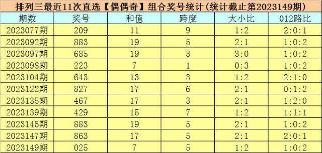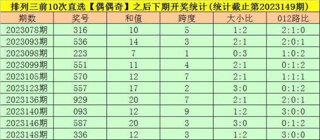 开奖回顾:排列三第2023149期开出奖号:025,类型为组六,和值为7,奇偶比为1:2,大小比为1:2,跨度为5。