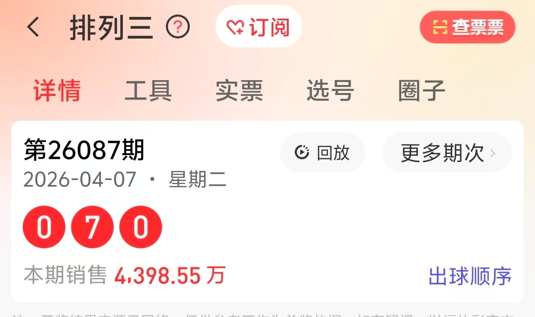 开奖号码:070