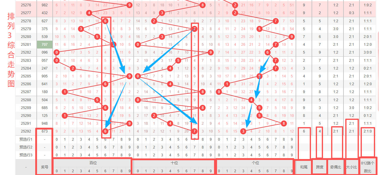 体彩排列3第2025292开奖号码673,形态为组六,奇偶比2:1,和值16,跨度4,大小比2:1,【012】路个数比2:1:0。