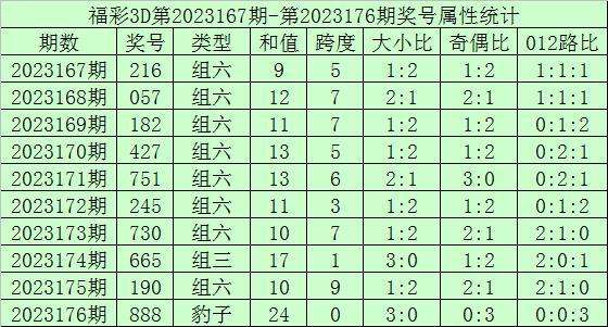 开奖回顾:福彩3D第2023176期开奖号:888,其中奖号和值:24,奇偶比0:3,大小比3:0。