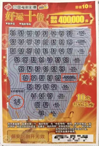 安岳县一位幸运购彩者刮出"好运十倍"40万元头奖