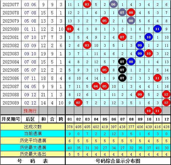后区分析:在第090期历史同期开奖中,后区奖号全奇组合开出2次,全偶组合开出7次,一奇一偶组合开出7次,本期后区预计出现一奇一偶组合,看好号码02、10、11、12。