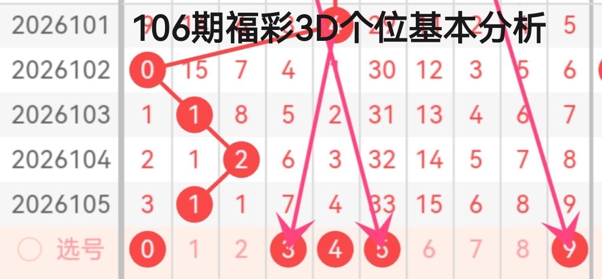 咱们用“定位法”进行106期福彩3D的分析: