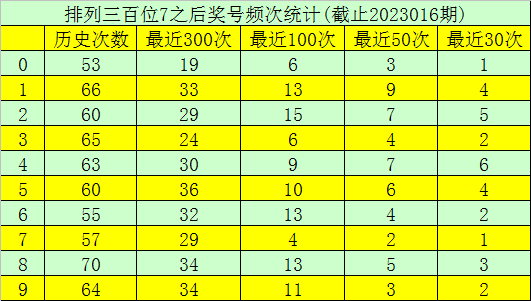 第一位杀号:上期第一位奖号为7,第一位奖号7历史上出现614次,前100次该位开出奖号7之后,下期号码0-9出现次数从高到底分别为:号码2→15次,1、6、8→13次,9→11次,5→10次,4→9次,0、3→6次,7→4次。