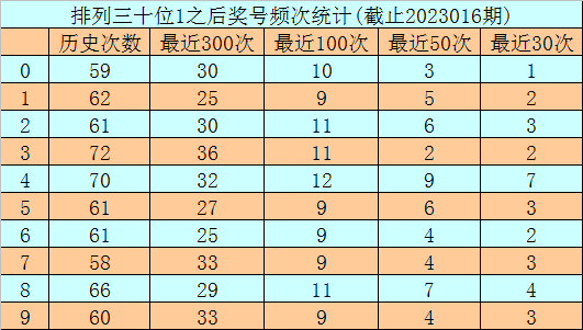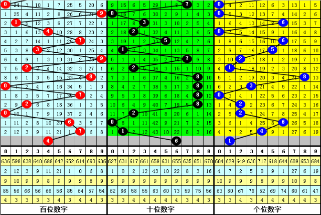 第二位杀号:第二位上期开出奖号为1,该位历史上奖号1开出了631次,最近100次第二位奖号出现1后,下期落号0-9次数从高到低分别为:号码4→12次,2、3、8→11次,0→10次,1、5、6、7、9→9次。