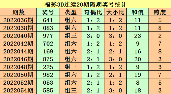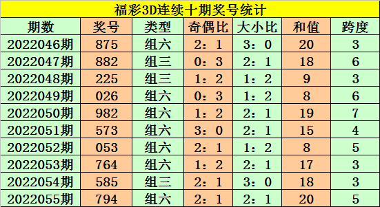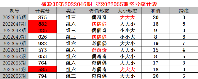 上期回顾:福彩3D第2022055期奖号:794。组六、大大小、奇奇偶。