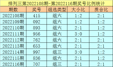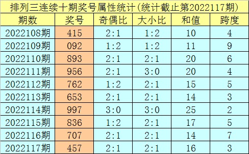 上期回顾:排列三第2022117期奖号:457。类型:组六,奇偶形态:偶奇奇,大小形态:小大大,和值:16,跨度:3。