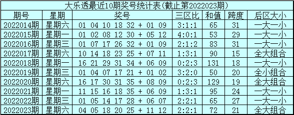 上期开奖:大乐透第2022023期开奖号码为:04 05 18 20 25 +11、12,各位号码遗漏值分别为:3 0 1 16 5 + 5 7。