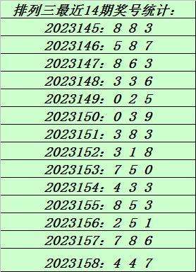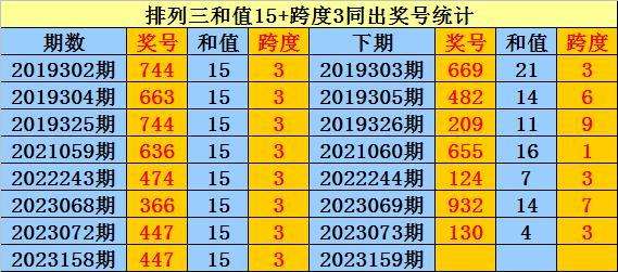 上期回顾:排列三第2023158期奖号:447。和值15,跨度3。
