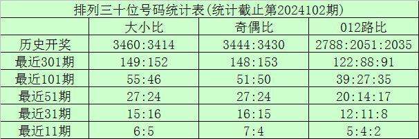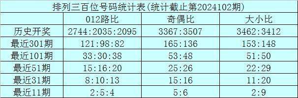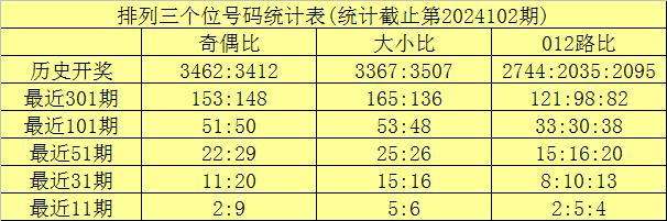 上期回顾:排列三第2024102期奖号为:215。奖号形态组六,大小比1:2,奇偶比2:1,012路0:1:2。