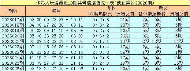 彤彤第2023027期体彩大乐透后区遗漏分析:(定义:后区遗漏0-3期号码为热码,遗漏4-9期号码为温码,遗漏9期的号码以上为冷码)