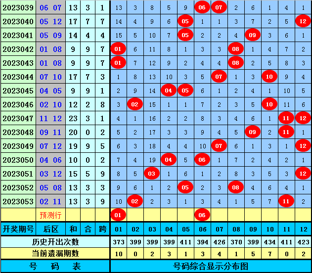 后区分析:上期后区开出全2路奖号02+11,最近10期后区奖号012路比为6:6:8,本期看好开出0路号码和1路号码,两码关注01、06。