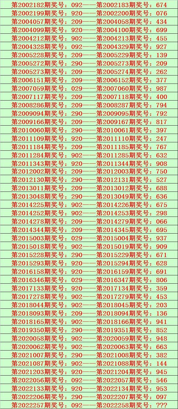 福彩3D第2022258期开奖日期:2022年9月25日,历史上第258期已开出了20次奖号,历年同期号码分别为:099、506、894、894、158、173、201、549、557、442、913、055、718、555、266、361、300、103、024、946。
