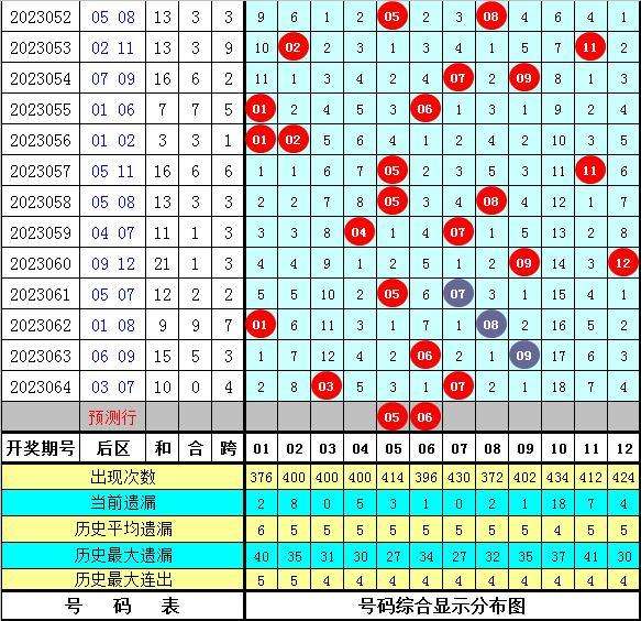 其中,后区奇偶比为20:20,大小比为22:18,012路比为12:13:17,本期后区金胆参考05。