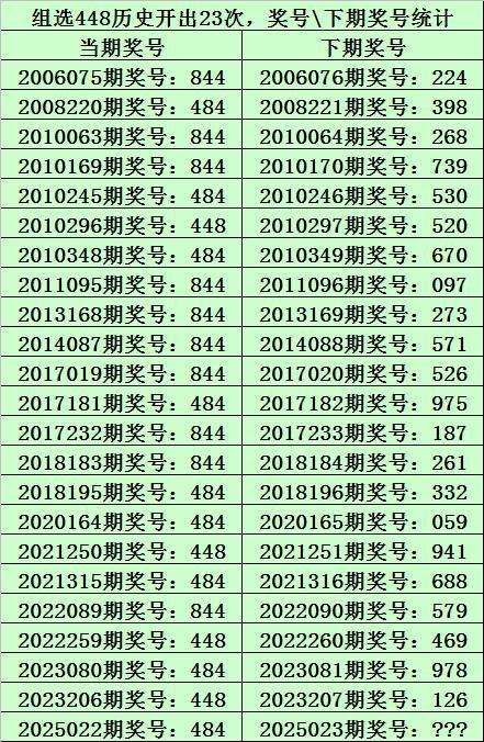 上期回顾:排列三第2025022期奖号为:484,类型:组三,历史上直选号码484出现了9次,组选号码448出现了23次。