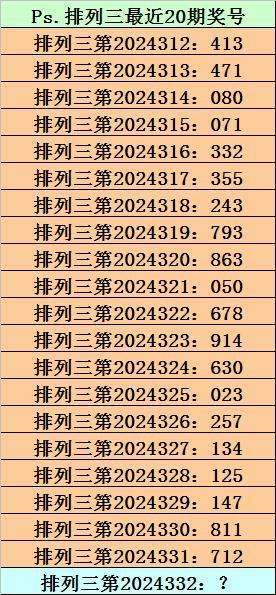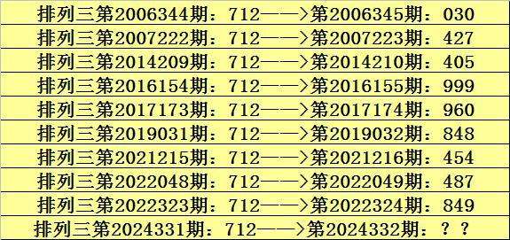 第2024331期排列三奖号为712,历史上该号码直选出现10次,下期奖号分别为:030、427、405、999、960、848、454、487、849。