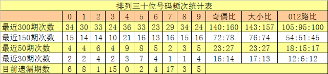 十位号码:前50期走势最活跃的号码为:4开出9个,5开出8个,2开出6个;走势最冷的号码为:7开出2个,8开出3个,0、1、3开出4个。十位号码012路比开出18:15:17,大小比开出23:27。本期十位排除两码:7、9,参考号码2、3、4,胆码关注4。