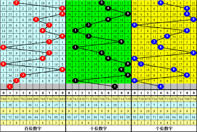 百位上期出现:温号2,该位连续十期以热号出现较多,以温号、冷号出现较少,目前该位遗漏15期以上的冷号有3个:1、4、8,本期注意该位冷号逐渐解冻,关注冷号1。