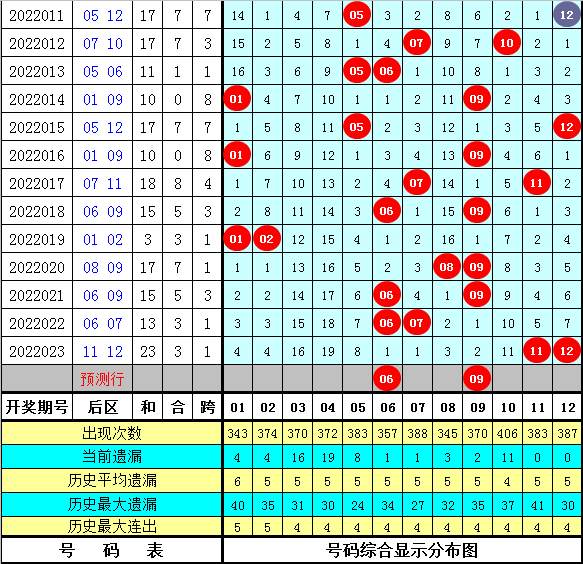 后区号码和值为23,跨度为1,奇偶比为1:1,大小比为2:0。