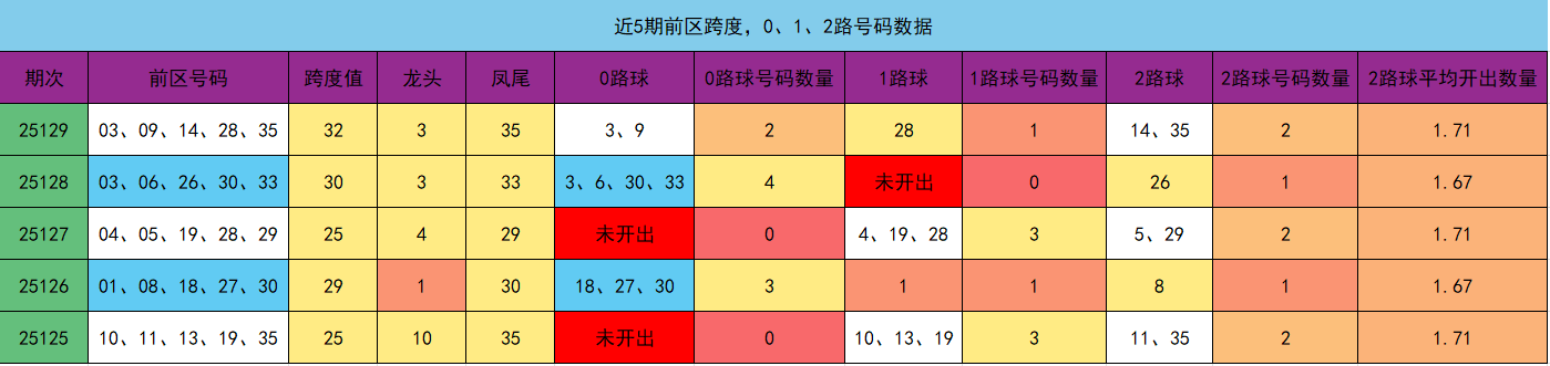 012路比: 上期0路开出2枚(03, 09),1路开出1枚(28),2路开出2枚(14, 35)。本期关注1路号码回补,推荐比例 2:2:1。