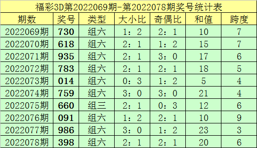 开奖回顾:福彩3D第2022079期开出奖号:210。