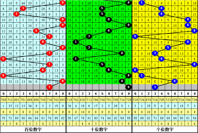 百位上期出现:热号9,该位连续十期以热号出现较多,以温号、冷号出现较少,目前百位热号有4个:0、6、7、9,本期看好开出热号再次出现,参考号码7。