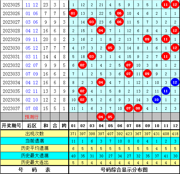 体彩大乐透第2023038期后区五码参考:01 03 04 05 06