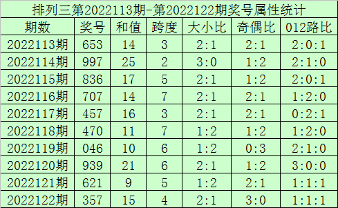 奖号类型分析:排列三最近七次【小大小】组合与【奇奇偶】组合出现之后,其下期豹子号码开出1次,组三号码开出1次,组六号码开出12次,其中组六号码开出频率非常热,本期预计继续开出组六号码。另外,其下期开奖有11期奖号包含了重号,本期预计继续开出重号,参考号码4 5。