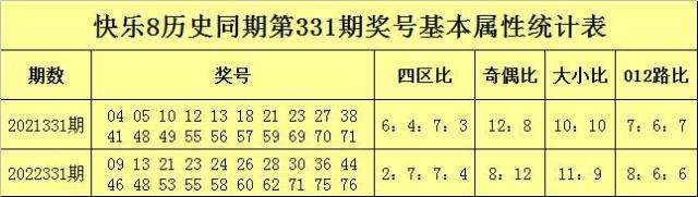 万妙仙快乐8历史同期第331期奖号基本属性分析