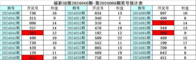 上期回顾:福彩3D第2024069期奖号为:451,其中奖号组选类型为:组六,奇偶比为2:1,大小比为1:2,012路比为0:2:1,和值为10,跨度为4。