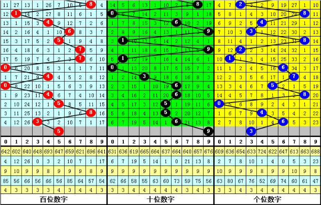 其中,号码0-9开出次数分别为:号码0开出1次、1开出3次、2开出2次、3开出2次、4开出7次、5开出2次、6开出3次、7开出2次、8开出6次、9开出2次。