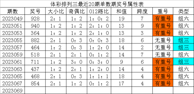 体彩排列三第2023069期发哥观点: