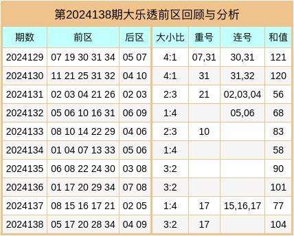 大乐透2024138期开奖,本期奖号:前区05、17、20、28、34,后区04、09。