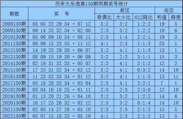 袁军师体彩大乐透第2023130期历史同期奖号分析: