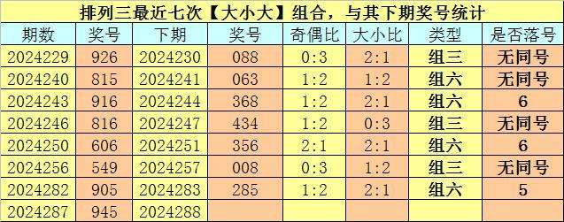 大小分析:排列三上期开出号码945,大小类型为【大小大】,最近七次开出大小类型大小大的奖号分别为:926、815、916、816、606、549、905,其下期分别开出号码:088、063、368、434、356、008、285。其中号码大小比为10:11,大小 号码开出比例基本相等,本期预计小 号转热,关注大小比1:2。
