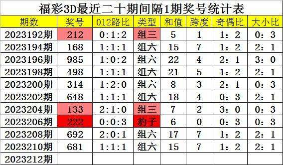 212期四叔福彩3D预测奖号:跨度参考