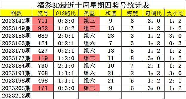 福利彩票3D上周四:第2023205期奖号为171。