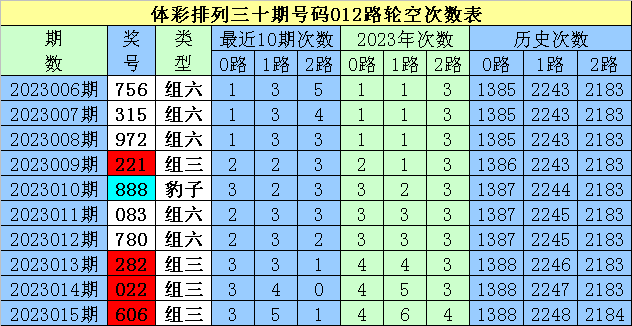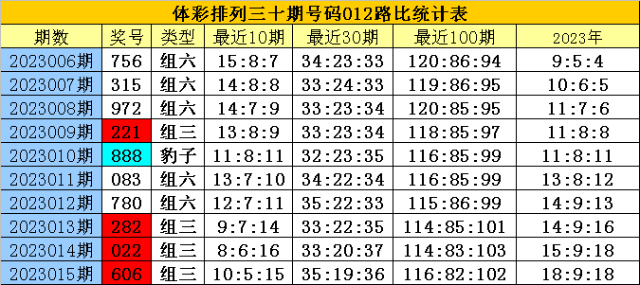 开奖回顾:排列三第2023015期奖号为:606,号码012路比为3:0:0。