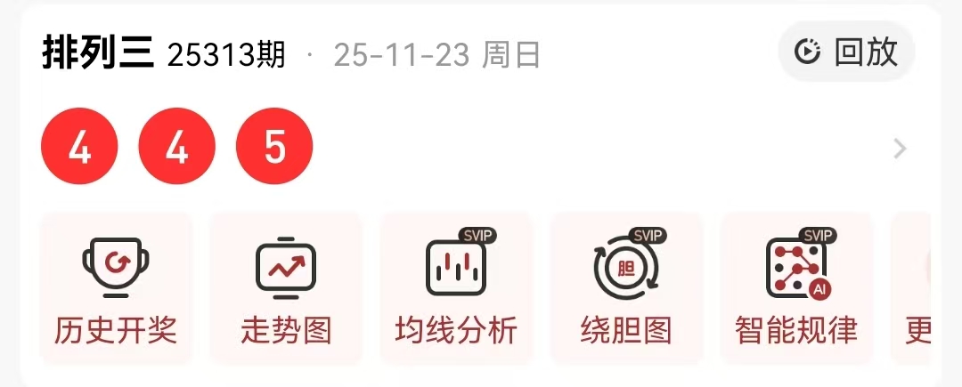 我们先来回顾一下上一期(第2025313期)的开奖结果是445,其中百位开出的小数偶数4,十位开出小数偶数4,个位则开出了大数奇数5。这个组合在大小比上呈现为1:2的小数优势,在奇偶比上则是1:2的偶数优势,而在012路比中,我们看到了0:2:1的比例分布。上期奖号的总和值为13,跨度为1,形态特征为半顺组三,这些数据为我们接下来的分析提供了基础