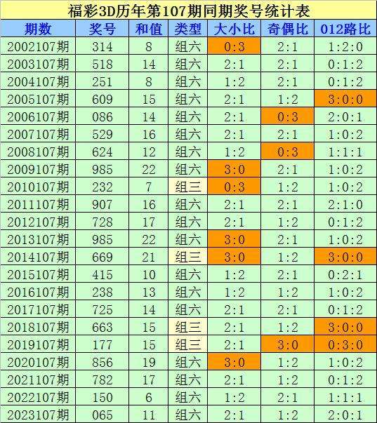 组选类型判断:在第107期历史同期开奖中,组六开出18次,组三开出4次,今年同期看好开出组六号码。
